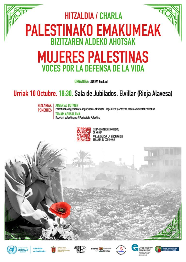 UNRWA Euskadi ha organizado para el próximo 10 de octubre la charla «Mujeres Palestinas. Voces por la Defensa de la Vida».