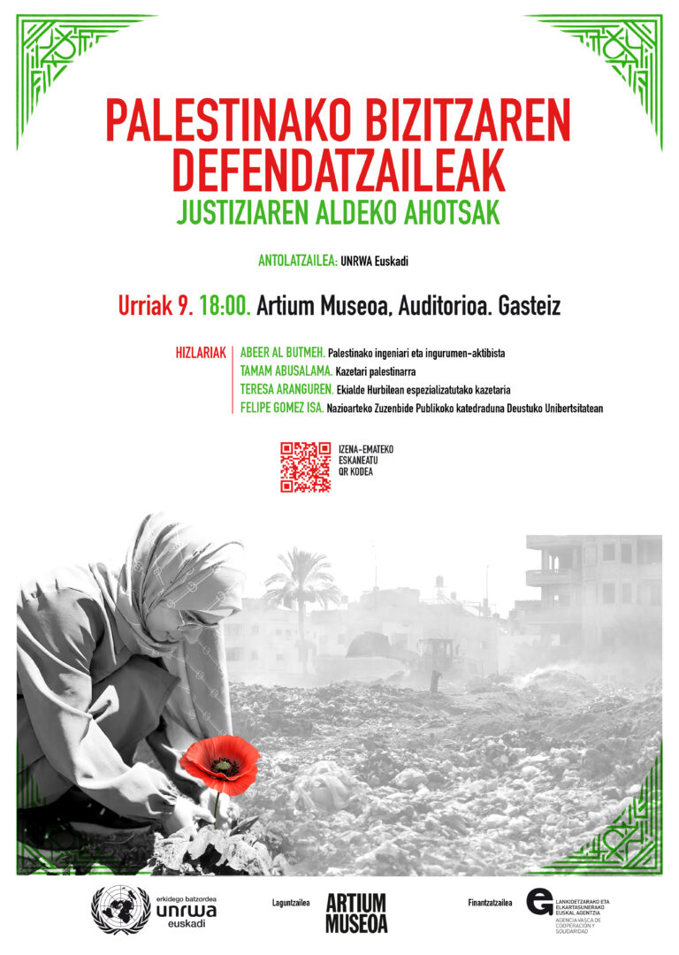 Urriaren 9an, osteguna, Gasteizko Artium Museoan “Palestinako Bizitzaren Defendatzaileak: Justiziaren aldeko Ahotsak” nazioarteko hitzaldia egingo da.