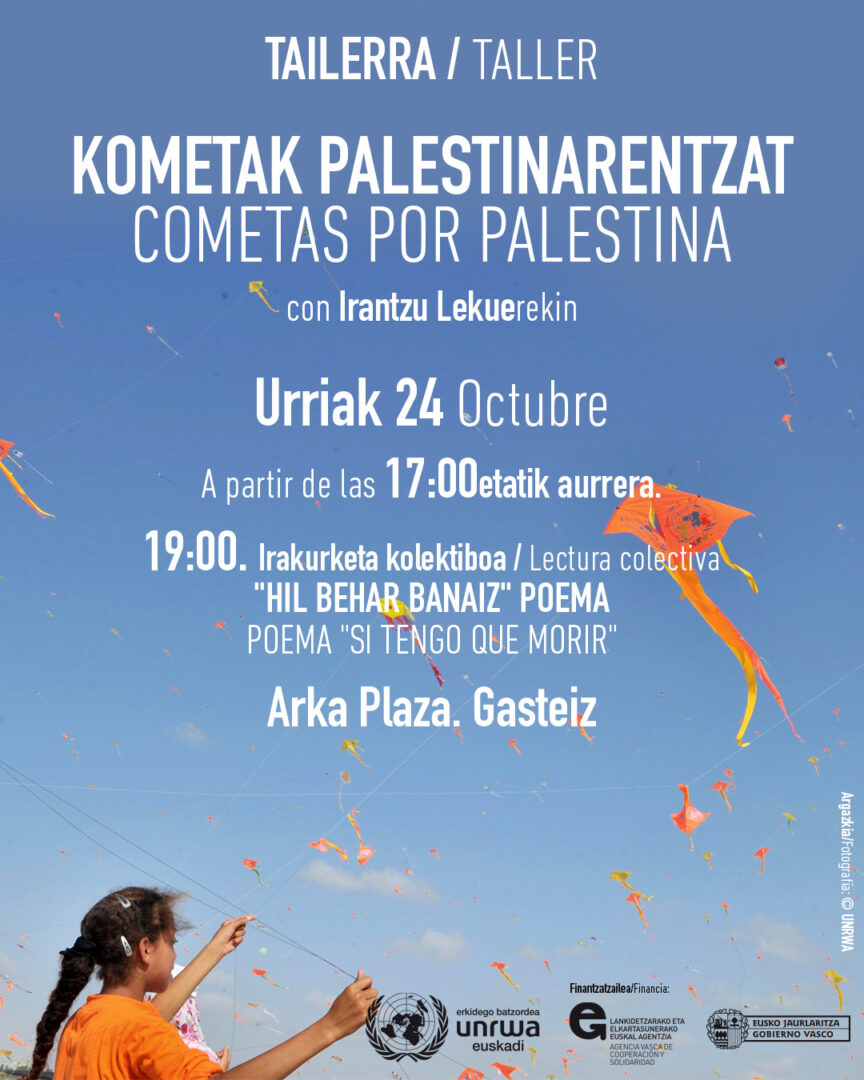 Ekitaldia 19:00etan amaituko da, Refaat Alareer, 2023an Gazan eraildako poeta palestinarraren “Si tengo que morir” olerkiaren irakurketa kolektiboarekin. Irakurketa honek bere ahotsa eta arteak bizirik mantentzen dituzten ahots guztiak omendu nahi ditu.